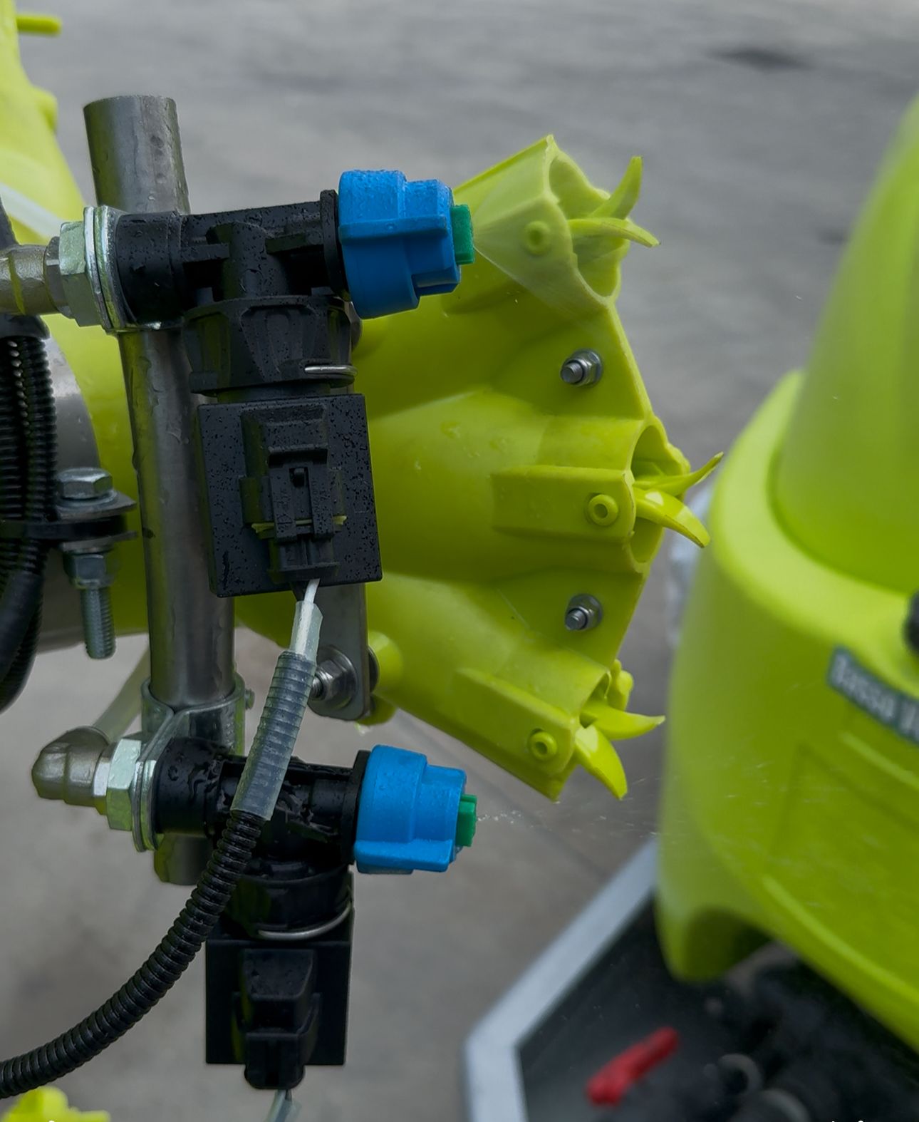 – due attuatori elettrici per movimentare le alette che indirizzano automaticamente il flusso di miscela sulla parte apicale della chioma limitando dispersioni fuori bersaglio.
